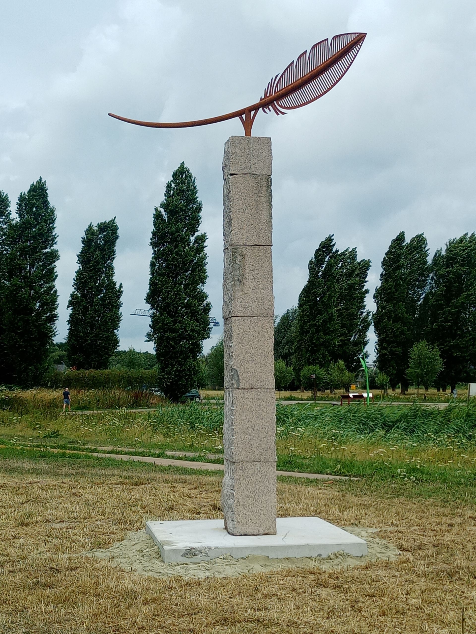 Marcel van Zijp ontwierp speciaal voor deze gelegenheid een mobiele sculptuur “Windveer”, een zuil van gekliefde en gestapelde blokken graniet, die gecompleteerd zal worden met een vogelveer uit cortenstaal, die zal roteren op de wind.